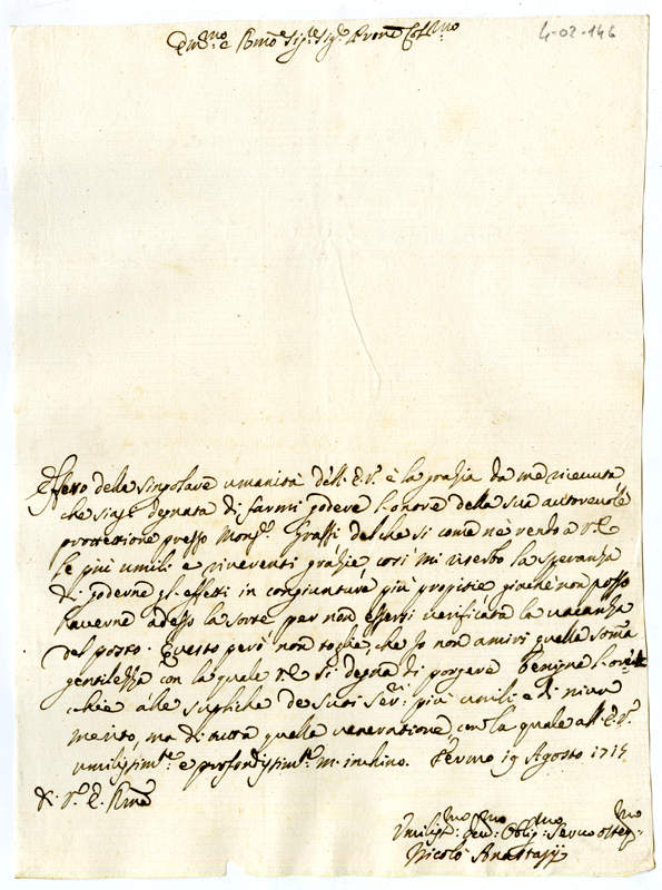 Lettera di Nicolò Anastasi al Cardinale Annibale Albani (1715 agosto 19)