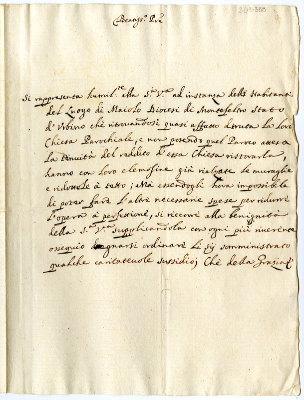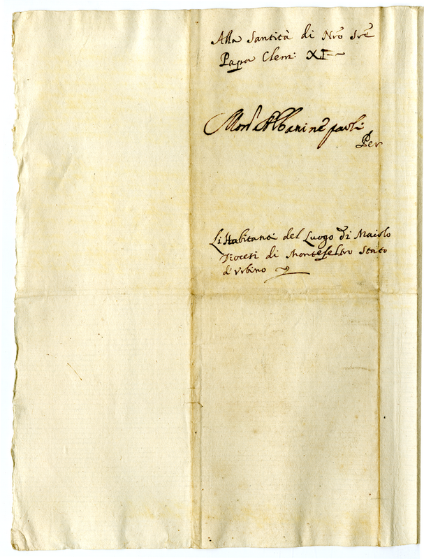 Lettera degli abitanti di Maiolo diocesi di Montefeltro stato di Urbino a Clemente XI (1700-1721)