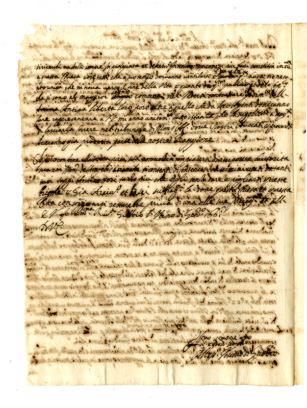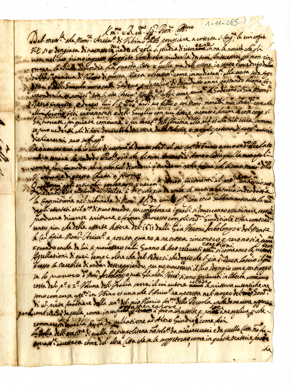 Lettera di Alessandro Sperelli, vescovo di Gubbio, a mons. Giovanni Francesco Albani (1661 gennaio 31)