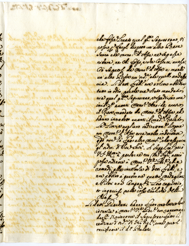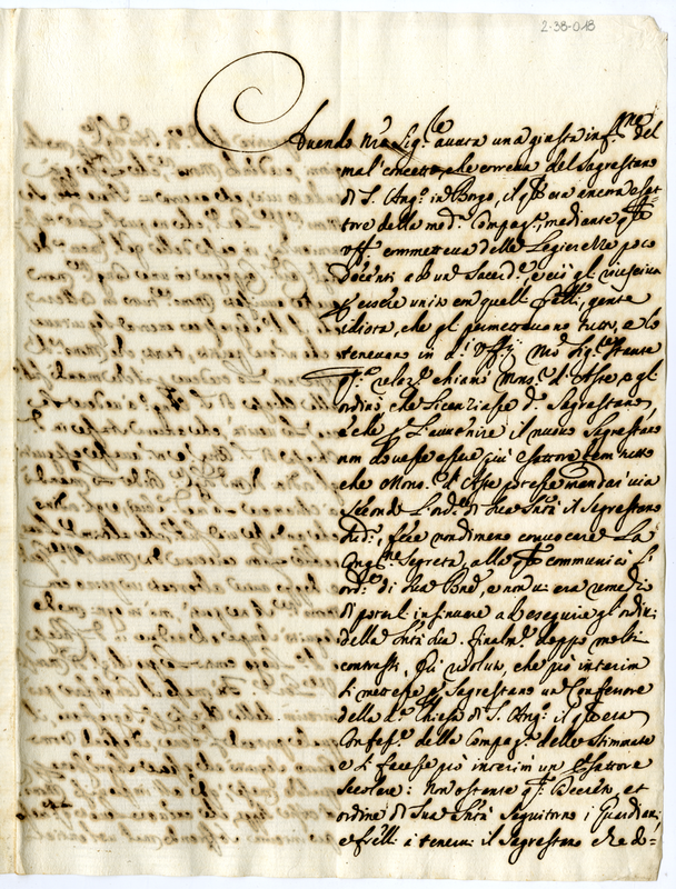Licenziato dal papa dall'ufficio di sagrestano di Sant'Angelo in Borgo per vita non adeguata al sacerdote, i guardiani della Campagnia di San'Angelo in Borgo lo difendono con insistenza. Si Supplica di parlate con il pontefice perchè ordini a monsignor vescovo generale di interrompere le insolenze dei detti guardiani
