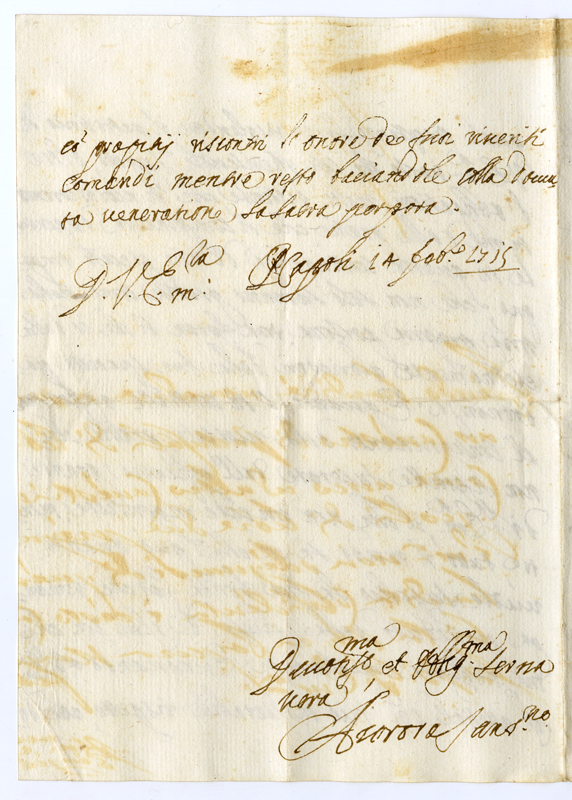 Lettera di Aurora Sansovino al Cardinale Annibale Albani (1715 febbraio 14)