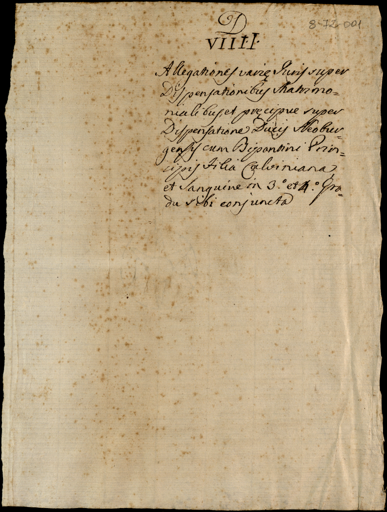 Allegazioni varie giuridiche sopra dispense matrimoniali