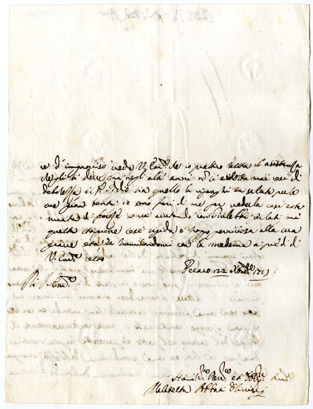 Lettera di Malatesta Abbati Olivieri al cardinale Annibale Albani (1713 dicembre 22)