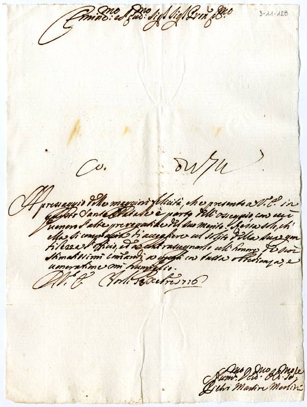 Lettera di Pietro Martire Merlini al cardinale Annibale Albani (1716 dicembre 13)