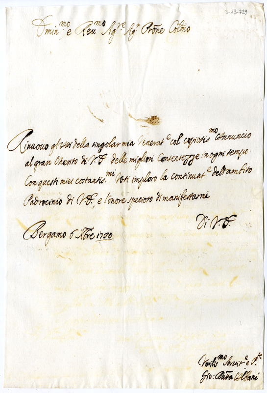 Lettera di Giovanni Battista Albani al cardinale Annibale Albani (1730 dicembre 6)