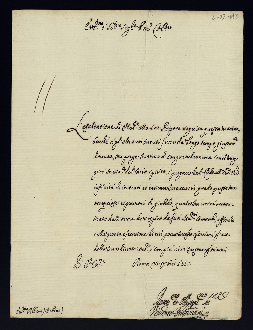 Lettere di congratulazioni per la promozione di Sua Eccellenza al Cardinalato