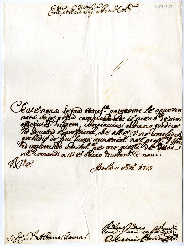 Lettera al cardinale Annibale Albani (1713 dicembre 10)