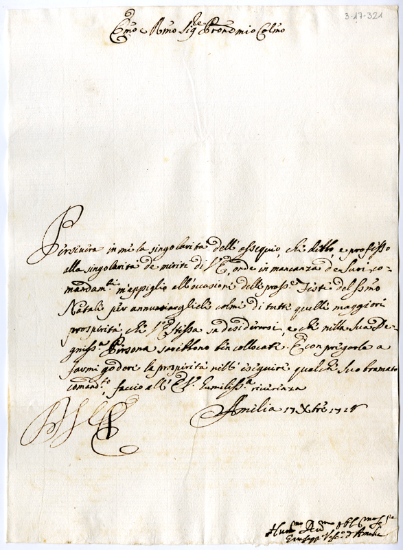 Lettera di Giuseppe vescovo di Amelia al cardinale Annibale Albani (1718 dicembre 17)
