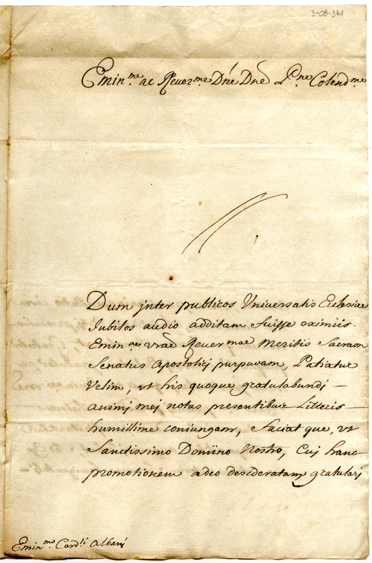 Lettera al cardinale Annibale Albani (1712 dicembre 4)
