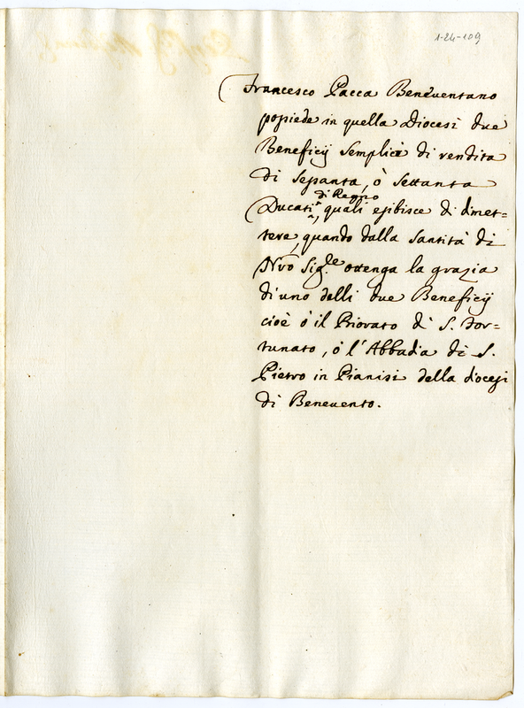 Su due benefici semplici posseduti da Francesco Pacca