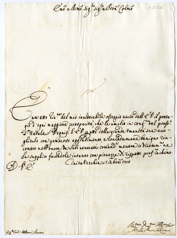 Lettera di Nicolò Maria Lercari al cardinale Annibale Albani (1714 dicembre 15)
