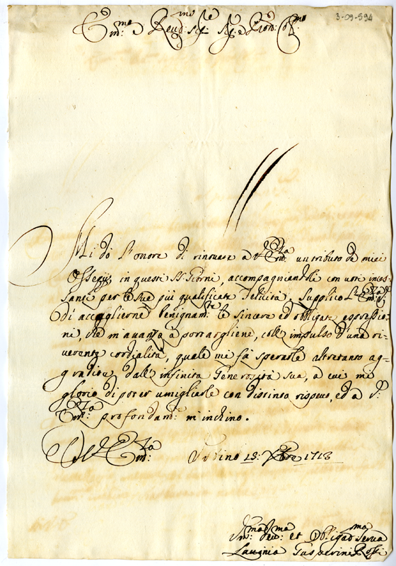 Lettera di Lavinia Gasperini Rossi al cardinale Annibale Albani (1713 dicembre 15)