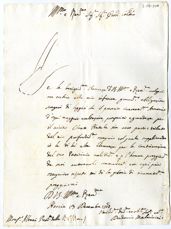 Lettera di don Dario Malvicini ad Annibale Albani (1708 dicembre 13)