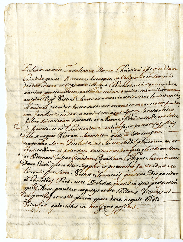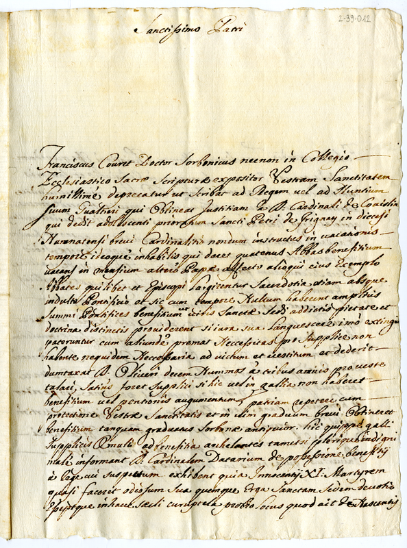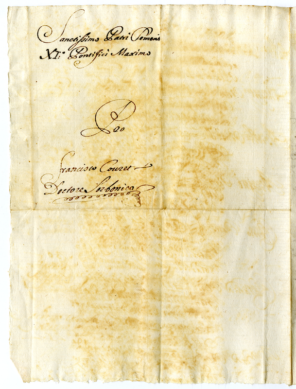 Lettera di Francesco Couret dottore alla Sorbona di Parigi a papa Clemente XI (1700-1706)