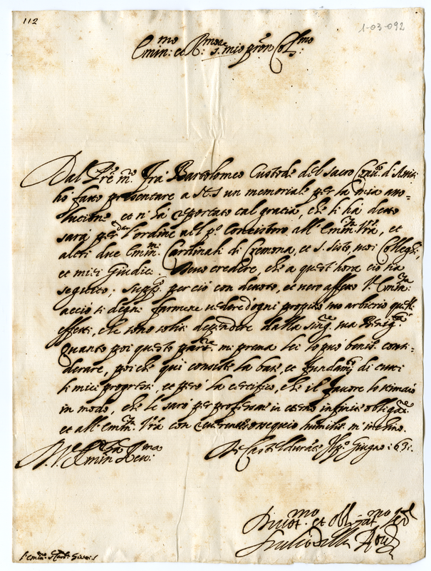 Lettera di Giulio Della Rovere al cardinale Sisto (1631 giugno 1)