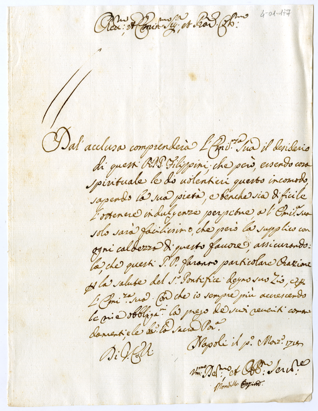 Chiede indulgenze perpetue per i reverendi padri Filippini di Napoli