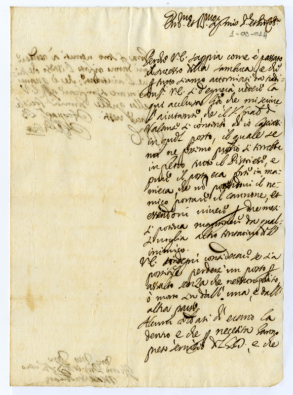 Minuta di lettera scritta da Malatesta Albani al cardinale Francesco Barberini (1644 aprile 3)