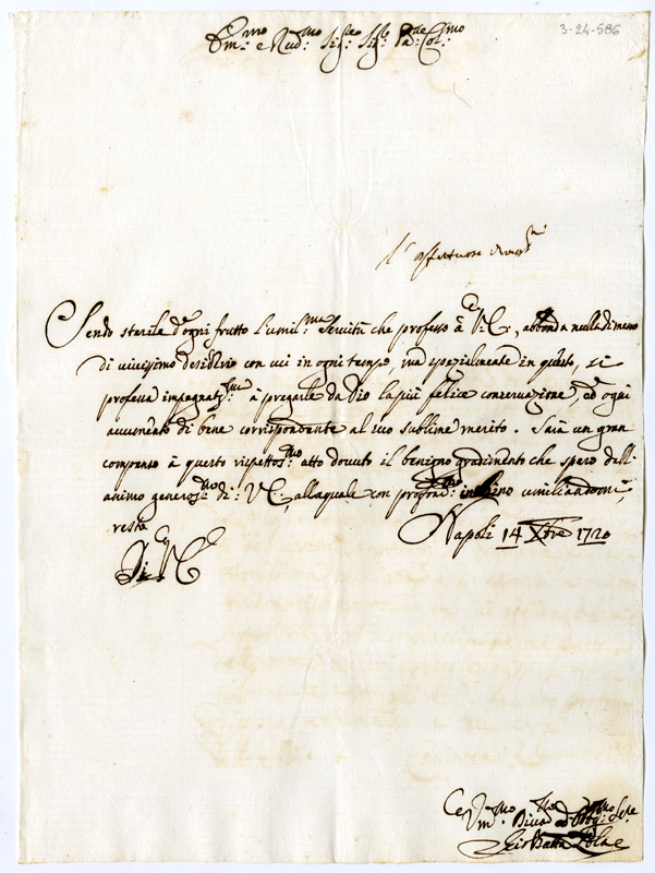 Lettera di Giovanni Battista Zola al cardinale Annibale Albani (1720 dicembre 14)