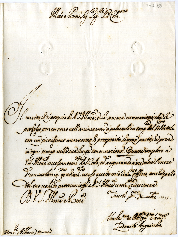 Lettera di Ludovico Anguissola ad Annibale Albani (1711 dicembre 1)