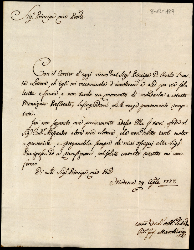 Lettere ricevute in Urbino nella permanenza in Urbino nei mesi di maggio, giugno e luglio 1777