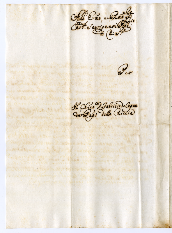 Lettera del chierico Don Fabrizio de Capua dei Principi della Riccia al cardinale Sacripanti (1700-1721)