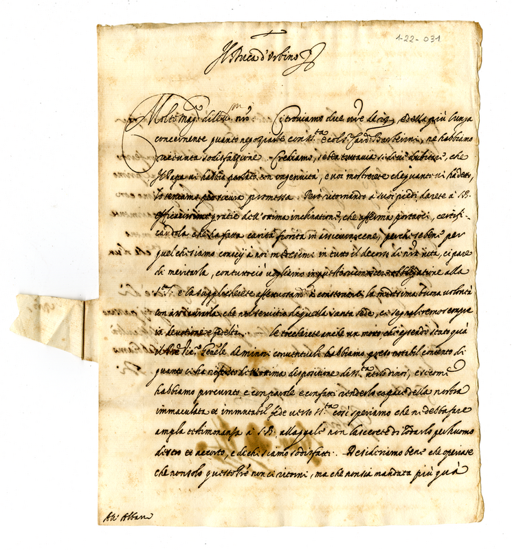 Lettera di Francesco Maria II duca di Urbino a Orazio Albani (1624 marzo 29)