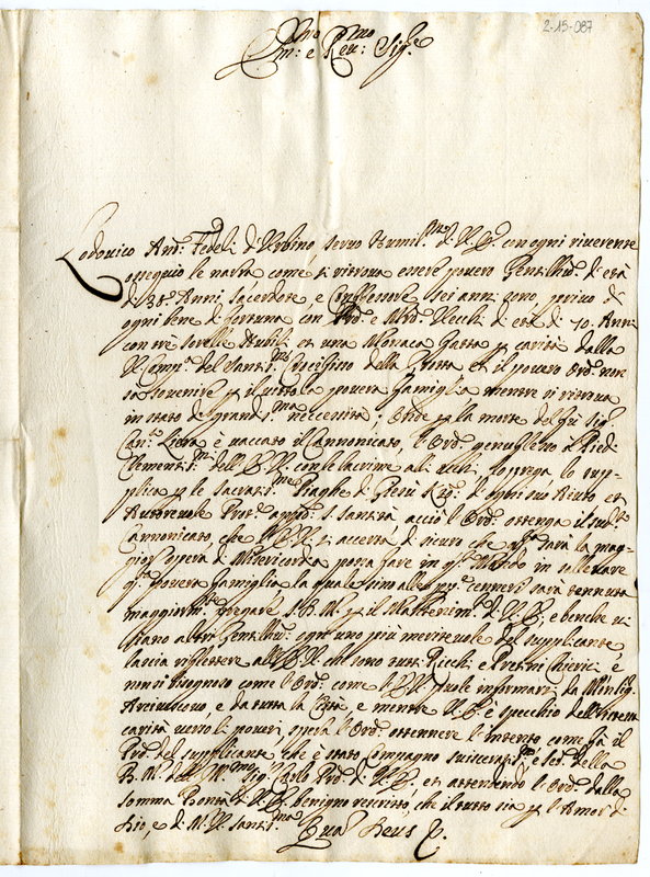Lettera di Lodovico Andrea Fedeli ad un cardinale (1690-1700)
