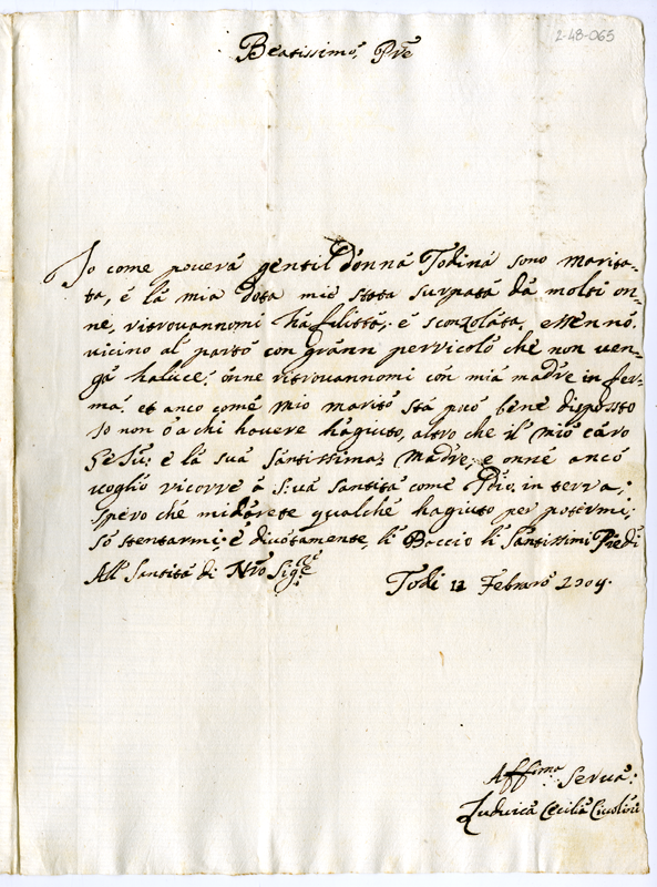 Lettera di Ludovica Cecilia Ciccolini a papa Clemente XI (1704 febbraio 12)