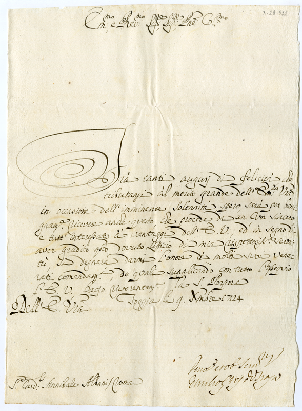 Lettera di Emilio vescovo di Troia al cardinale Annibale Albani (1724 dicembre 9)