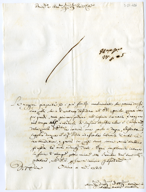 Lettera di Antonio Maria Sinibaldi al cardinale Annibale Albani (1723 dicembre 10)