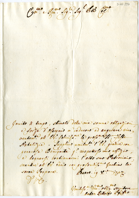 Lettera di Anton Ridolfo Pfiffer al cardinale Annibale Albani (1727 dicembre 19)