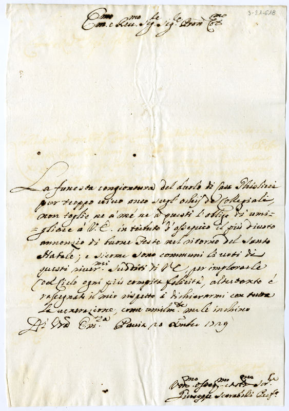 Lettera di Giuseppe Scarabelli al cardinale Annibale Albani (1729 dicembre 28)