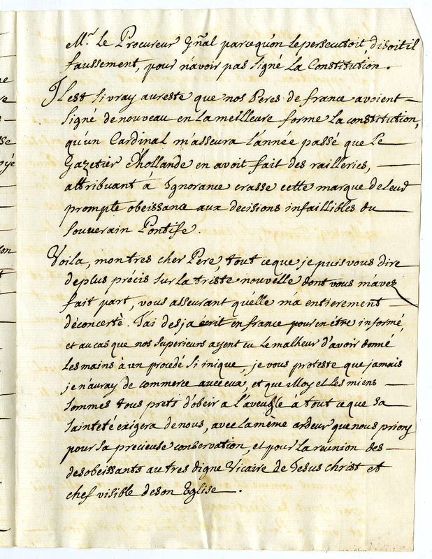 Informa di aver mandato un esemplare alla comunità della Trappa in Francia per il giuramento voluto dal papa alla costituzione unigenitus