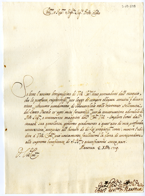 Lettera di Antonio vescovo di Mantova ad Annibale Albani (1719 dicembre 8)
