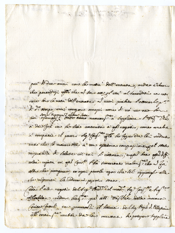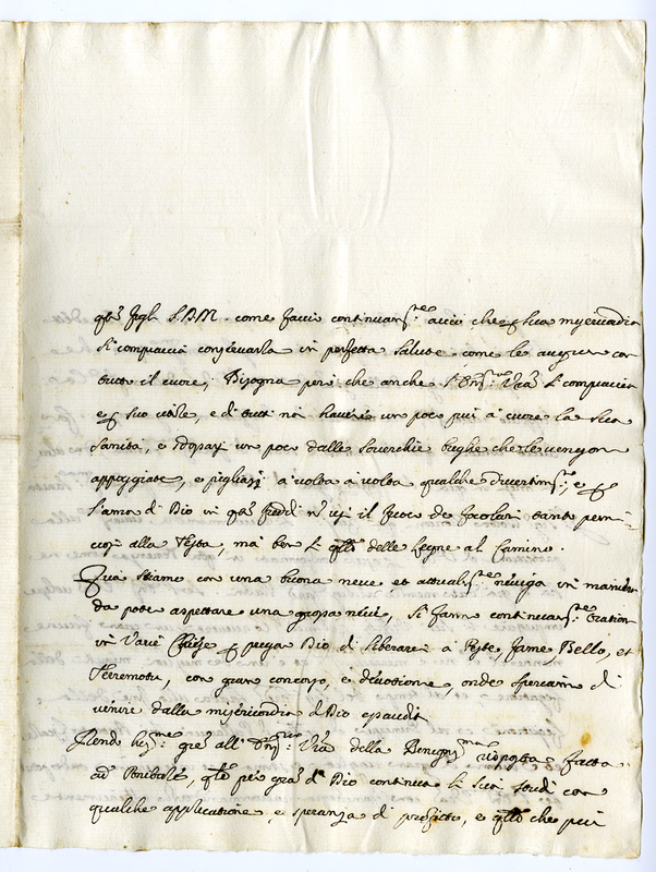 Ringraziamenti per i benefici concessi al cavalier Staccoli Andrea. Preghiere per la liberazione "a peste, fame, bello et terremotu". Raccomandazione per il signor dottor Ronconi