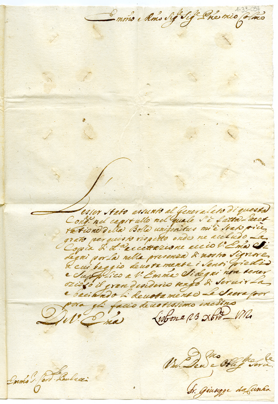 Lettera di Giuseppe da Cunha al cardinale Paulucci (1714 dicembre 23)