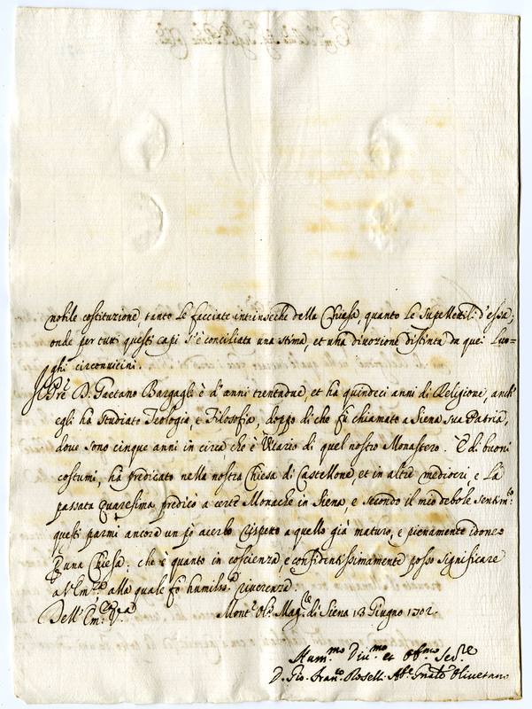 Lettera di Giovanni Francesco Roselli (1702 giugno 13)
