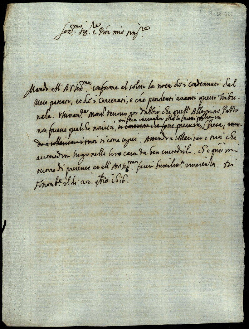 Minute di lettere scritte da Orazio Albani al serenissimo duca di Urbino appartenenti alla Podestaria di Fossombrone