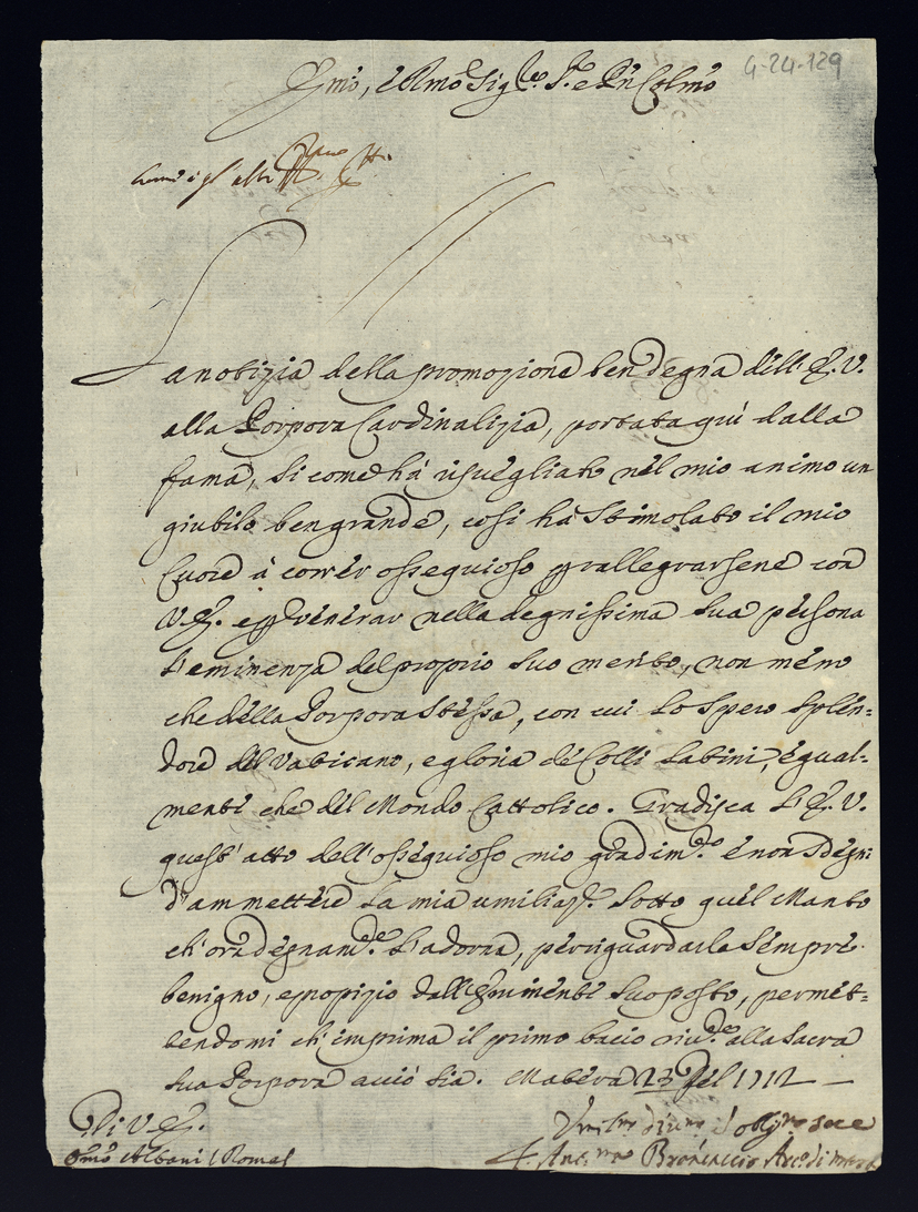 Lettere di congratulazioni per la promozione di sua eccellenza al cardinalato