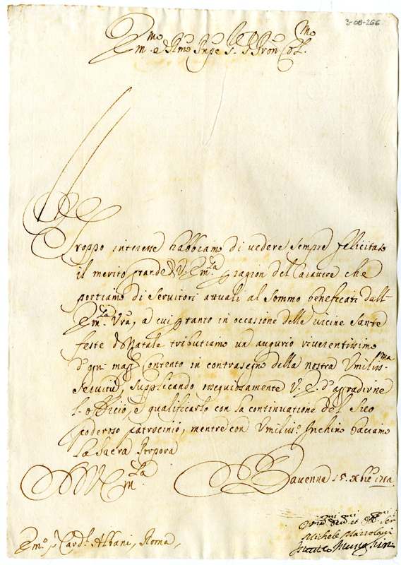 Lettera al cardinale Annibale Albani (1712 dicembre 15)