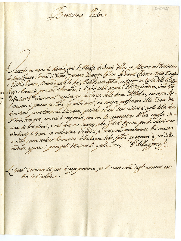 Lettera di Giuseppe Calisto de Gentili a papa Clemente XI (1700-1721)