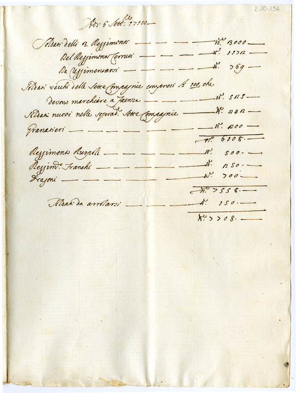 Numero di soldati di Reggimenti e Compagnie (1708 settembre 6)
