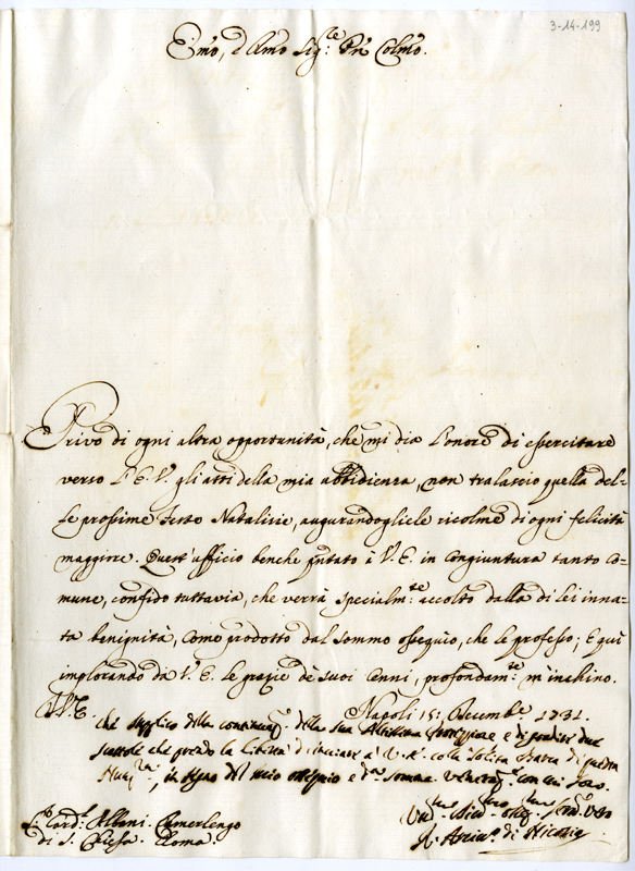 Lettera dell'arcivescovo di Nicosia al cardinale Annibale Albani (1731 dicembre 15)