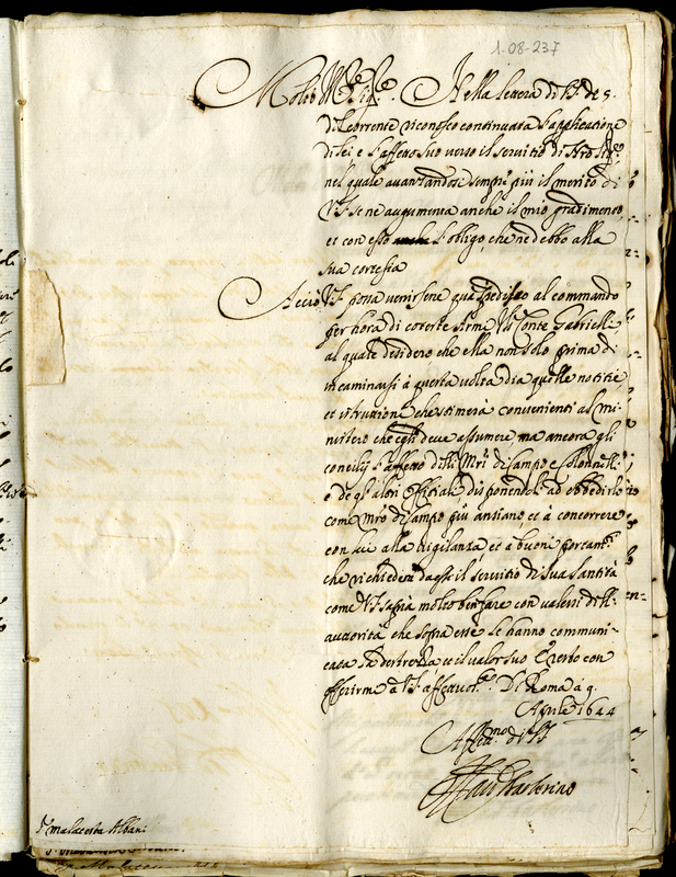 Lettera del cardinale Barberini Francesco senior a Malatesta Albani (1644 aprile 9)