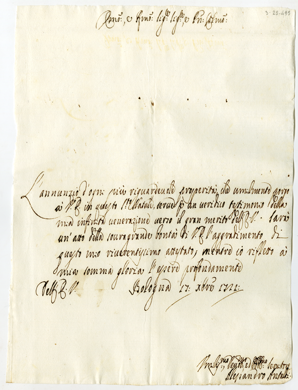 Lettera di Alessandro Antaldi al cardinale Annibale Albani (1721 dicembre 17)