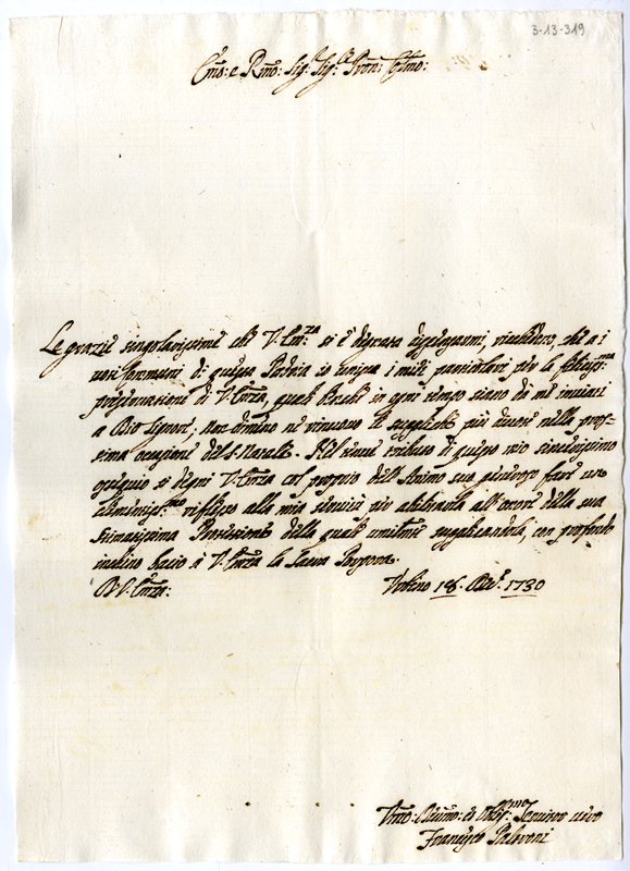Lettera di Francesco Paltroni al cardinale Annibale Albani (1730 dicembre 18)
