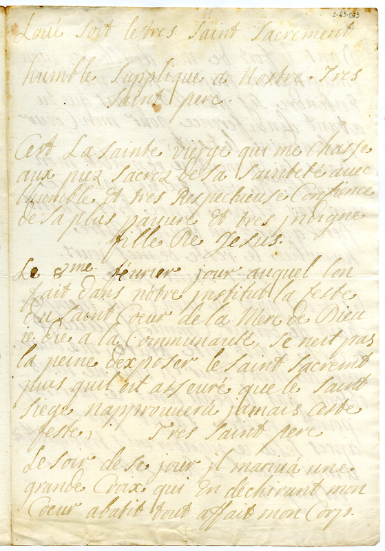 Esorta il pontefice a favorire la festa del Sacro Cuore della madre di Dio nella sua comunità