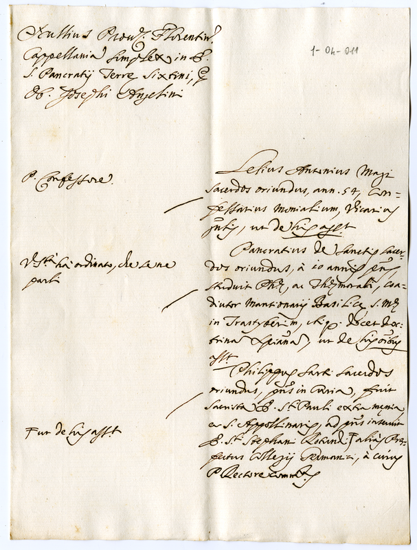 Nullius providentiae florentinis cappellania simplex in S. Pancratii terrae Sixtini, ab. Iosephi Angelici