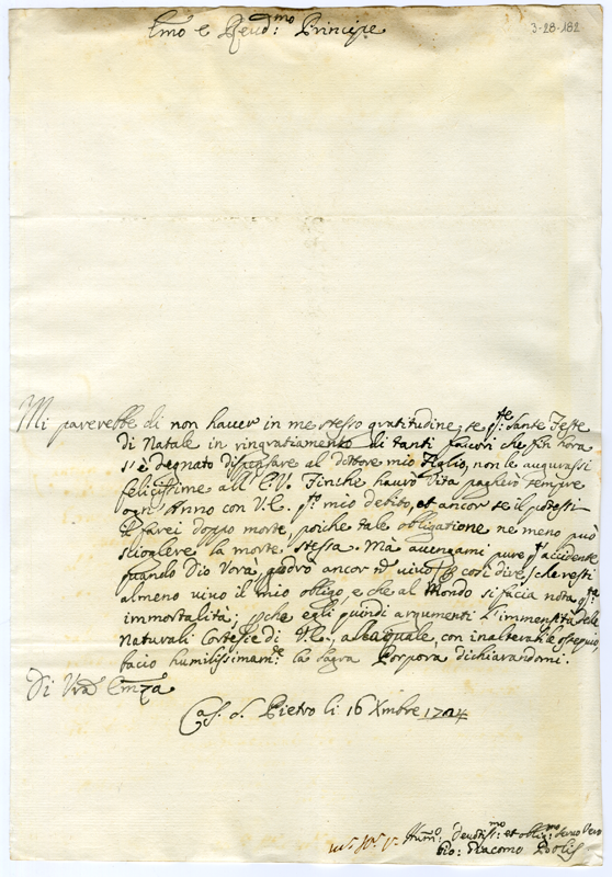 Lettera di Giovanni Giacomo Bolis al cardinale Annibale Albani (1724 dicembre 16)