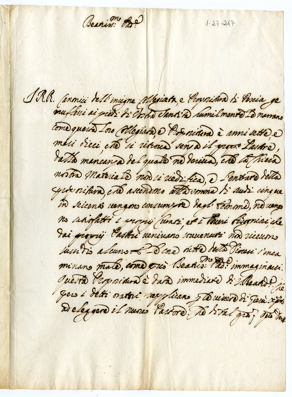 Lettera dei Canonici della Collegiata e Propositura di Pescia al Santo Padre (1600-1700)